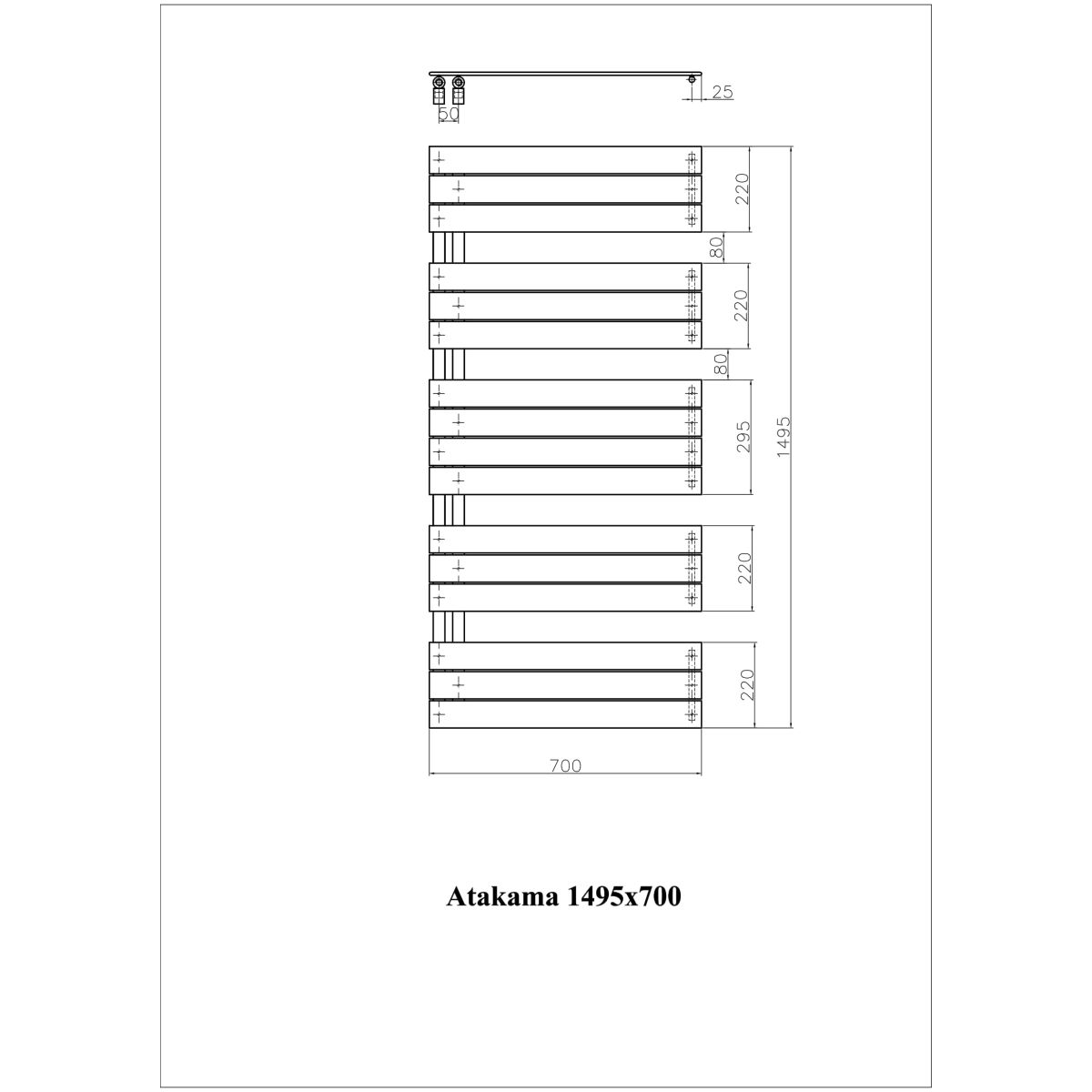 ATAKAMA ist eine einzigartige, außergewöhnliche Konstruktion. Die breiten und flachen Heizpaneele sind rhythmisch in Gruppen angeordnet und auf einem Doppelkollektor montiert. Die Wahl dieses Heizkörpers ist die ideale Lösung für jedes moderne Badezimmer.
