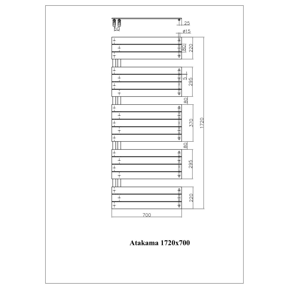 ATAKAMA ist eine einzigartige, außergewöhnliche Konstruktion. Die breiten und flachen Heizpaneele sind rhythmisch in Gruppen angeordnet und auf einem Doppelkollektor montiert. Dieser Heizkörper ist die ideale Lösung für jedes moderne Badezimmer.