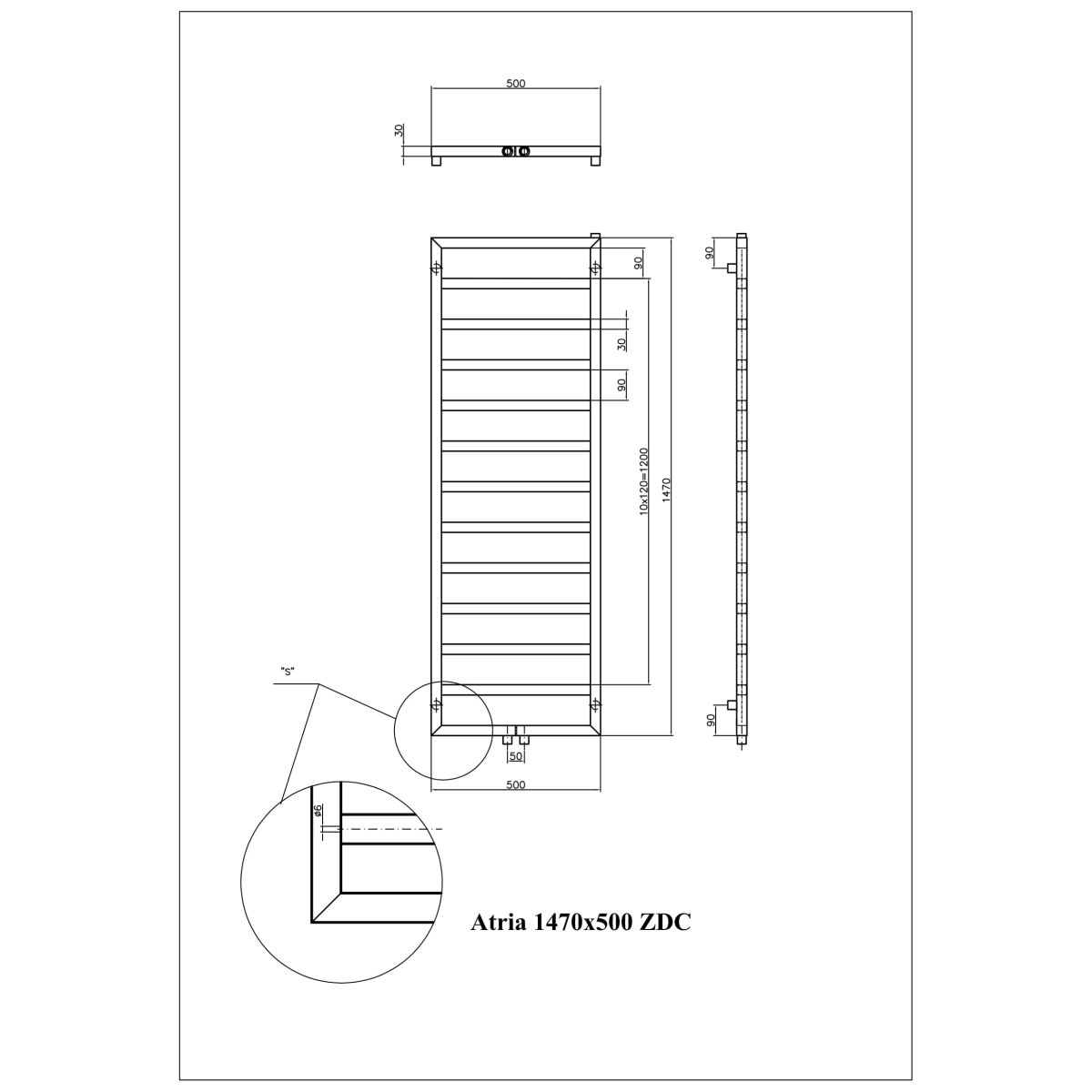 Der Heizkörper ATRIA – die Schlichtheit der weit auseinander liegenden Rohre mit quadratischem Querschnitt und die rechteckige Form der Konstruktion passen zu jeder Badezimmerausstattung und verleihen ihr Charme. Es handelt sich um einen solide gefertigten Heizkörper aus lackiertem kohlenstoffarmem Stahl.