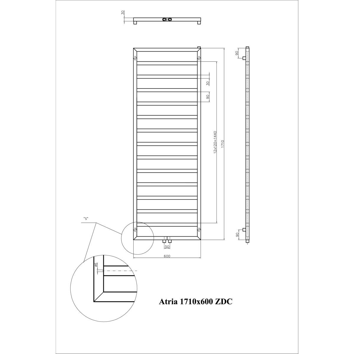 Luxrad Atria ZDC Badezimmerheizkörper dekorativ 171x60 cm ATR17106007016ZDC