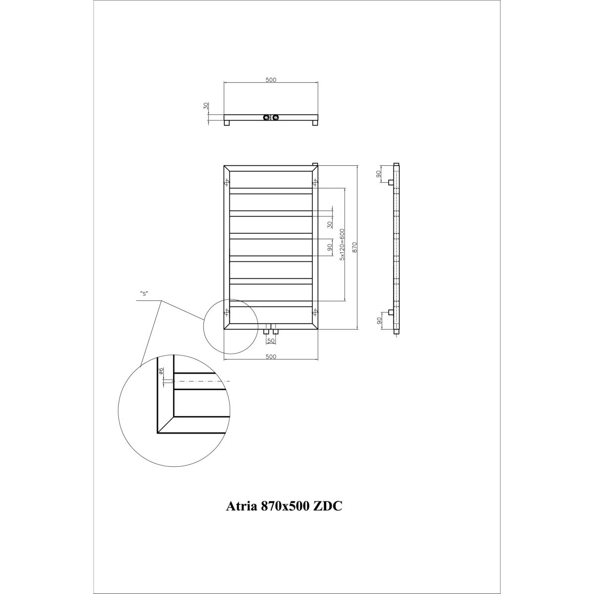 Der Heizkörper ATRIA – die Schlichtheit der weit auseinander liegenden Rohre mit quadratischem Querschnitt und die rechteckige Form der Konstruktion passen zu jeder Badezimmerausstattung und verleihen ihr Charme. Es handelt sich um einen solide gefertigten Heizkörper aus lackiertem kohlenstoffarmem Stahl.