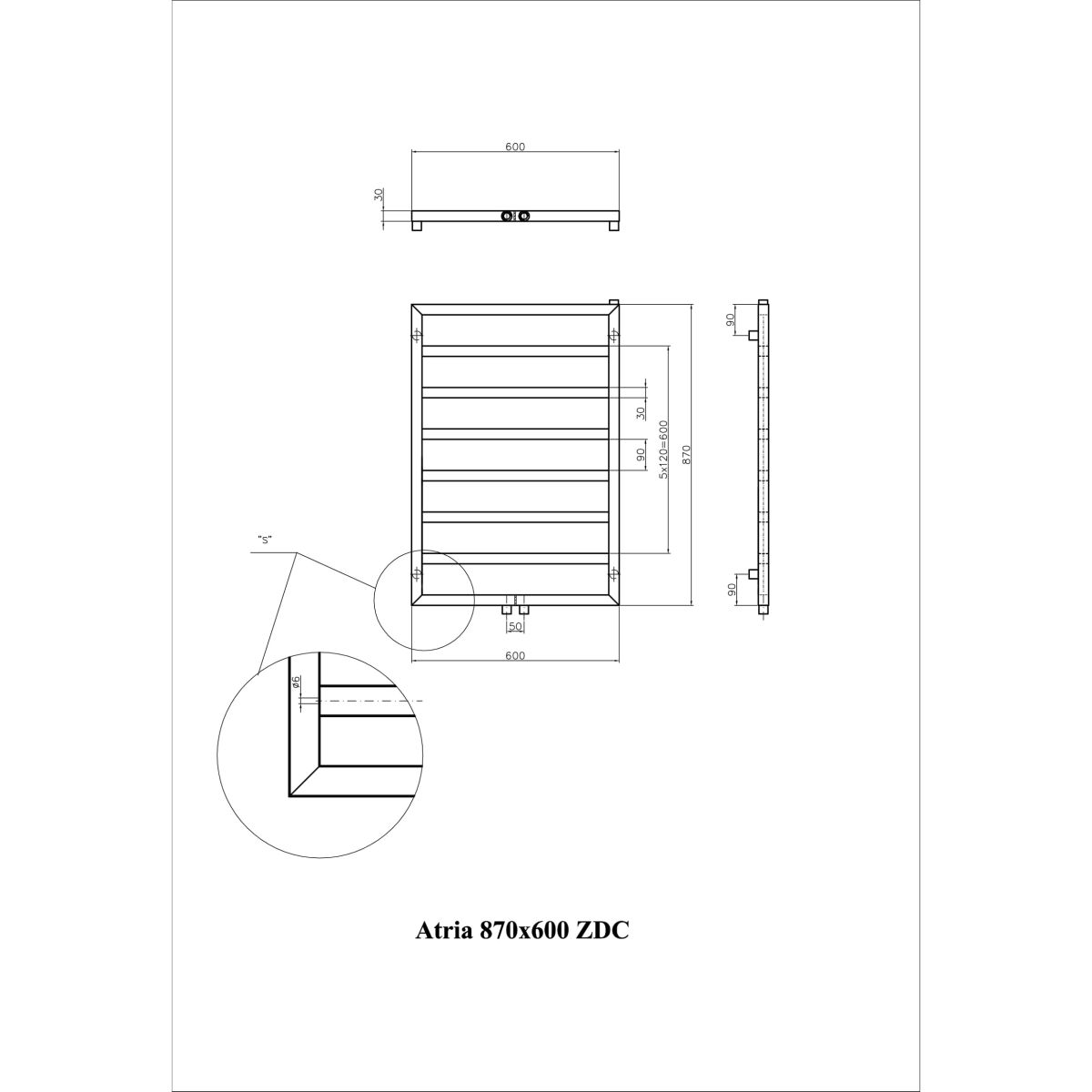 Der Heizkörper ATRIA – die Schlichtheit der weit auseinander liegenden Rohre mit quadratischem Querschnitt und die rechteckige Form der Konstruktion passen zu jeder Badezimmerausstattung und verleihen ihr Charme. Es handelt sich um einen solide gefertigten Heizkörper aus lackiertem kohlenstoffarmem Stahl.