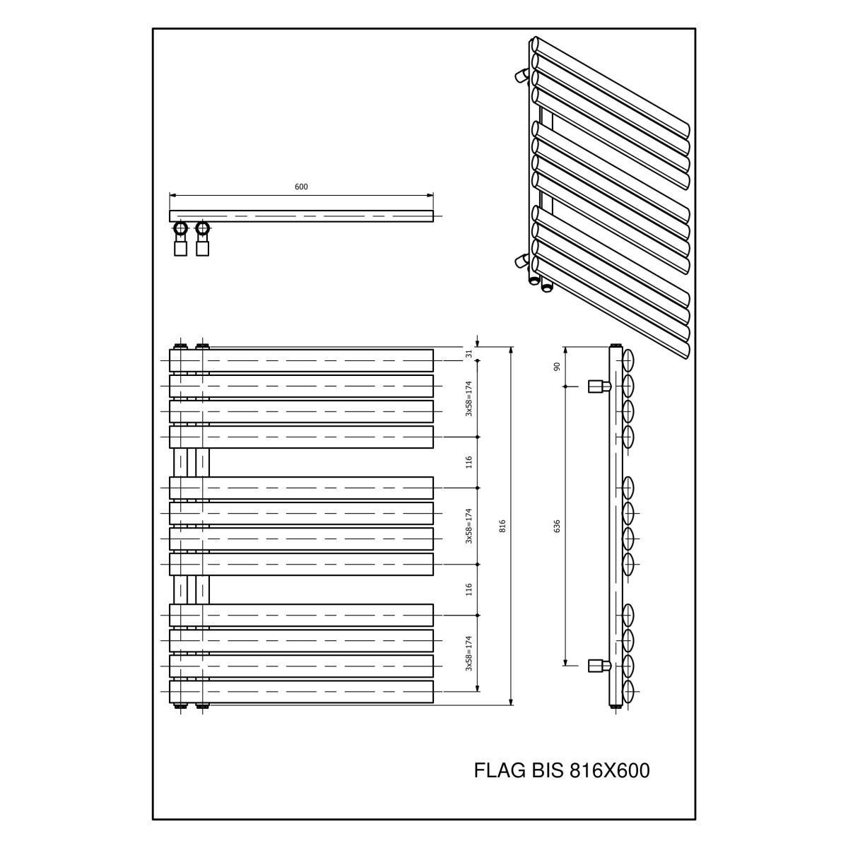 FLAG BIS ist die perfekte Kombination aus Heiz- und Dekorationsfunktion. Seine länglichen, dicht angeordneten und leicht abgerundeten Heizelemente auf einem runden, länglichen Kollektor bilden eine moderne und universelle Heizkörperkomposition. Er passt in jedes Badezimmer und verleiht ihm einen luxuriösen Ausdruck.