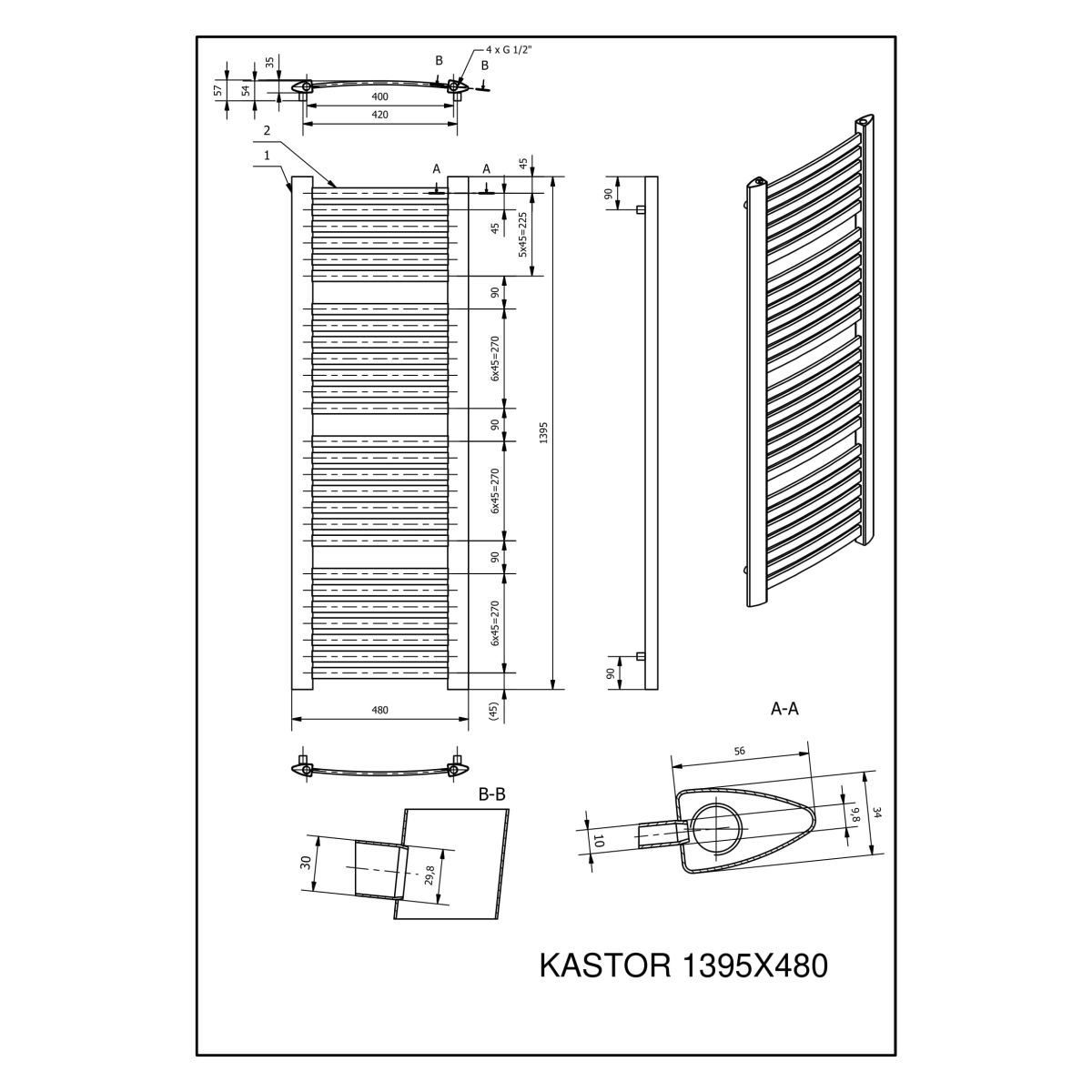 Luxrad Kastor Badezimmerheizkörper dekorativ 139.5x48 cm KAST13954807016