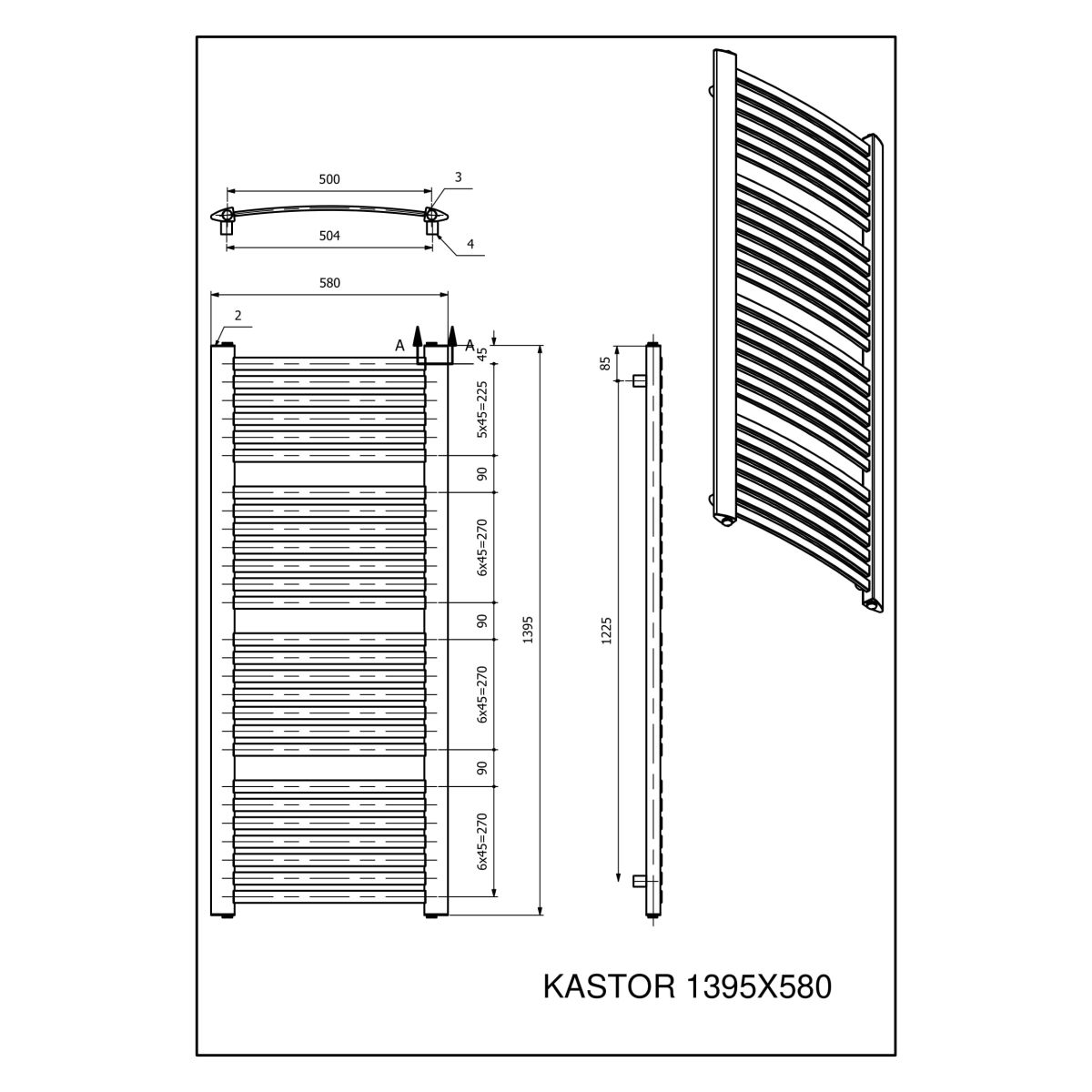 Luxrad Kastor Badezimmerheizkörper dekorativ 139.5x58 cm KAST13955807016