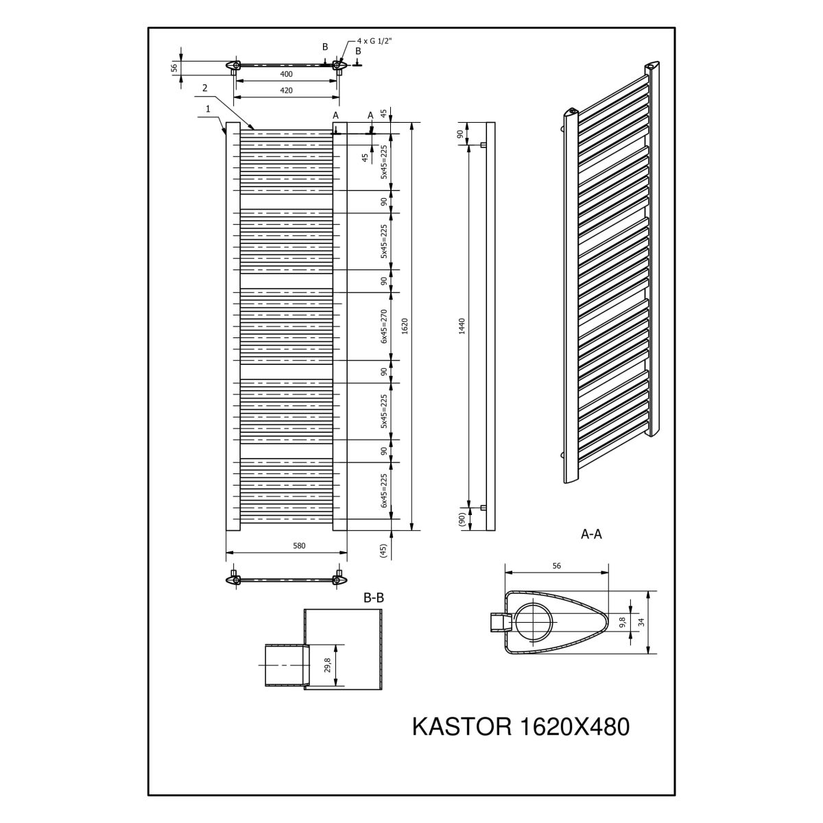 Luxrad Kastor Badezimmerheizkörper dekorativ 162x48 cm weiß KAST16204809003