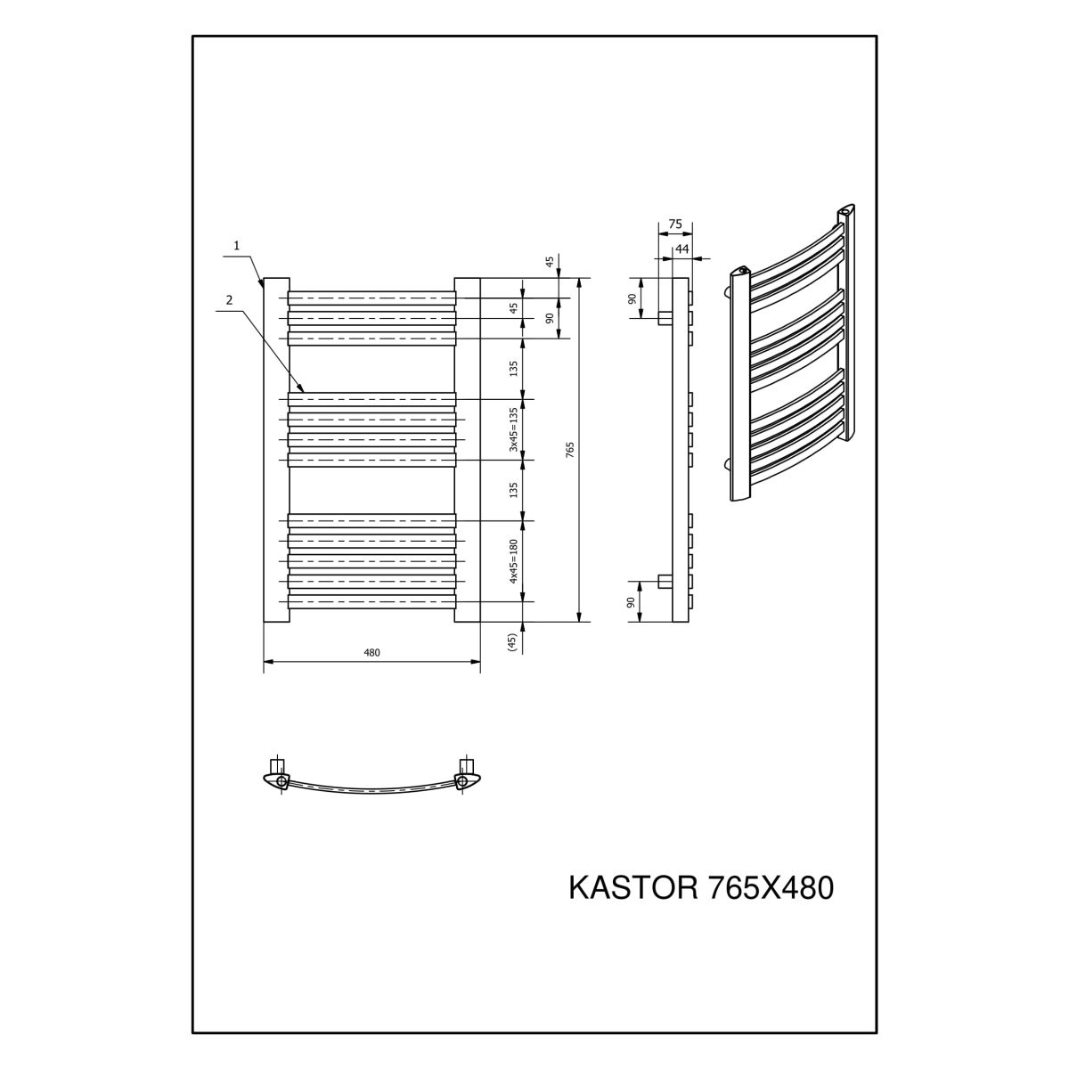 Luxrad Kastor Badezimmerheizkörper dekorativ 76.5x48 cm KAST7654807016