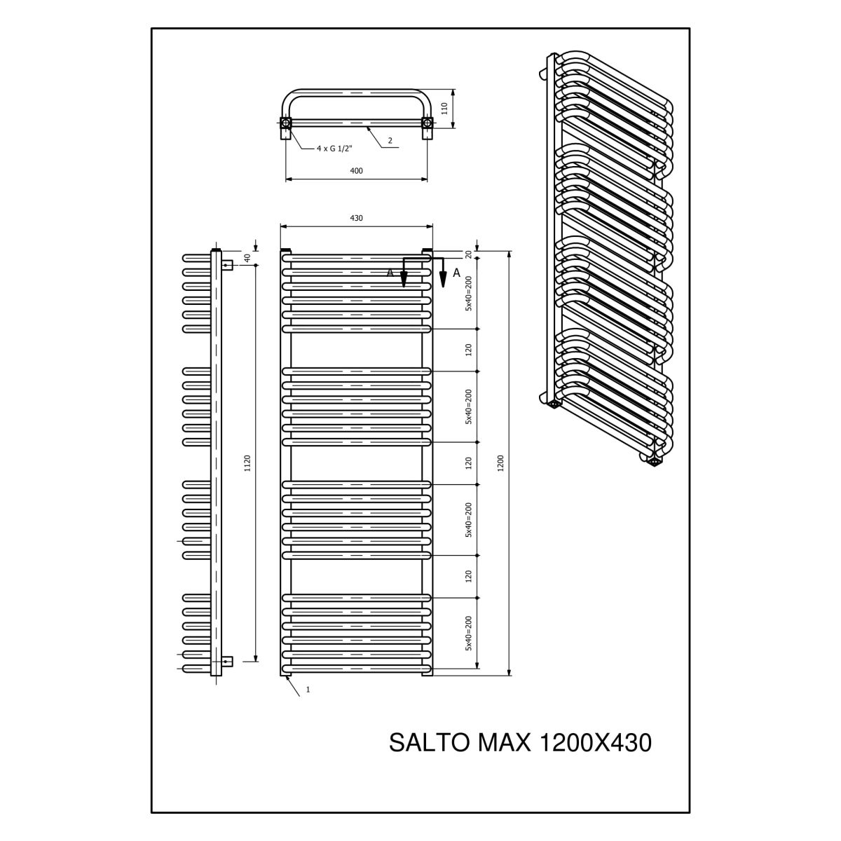 SALTO MAX verfügt über Stahlheizrohre mit subtilen Krümmungen, die auf zwei seitlichen Kollektoren angebracht sind. Gerade diese ungewöhnliche Form macht den Heizkörper zu einer modischen und stilvollen Dekoration im Badezimmer. Er passt zu jeder Art von Badezimmer, sowohl zu modernen als auch zu traditionellen.