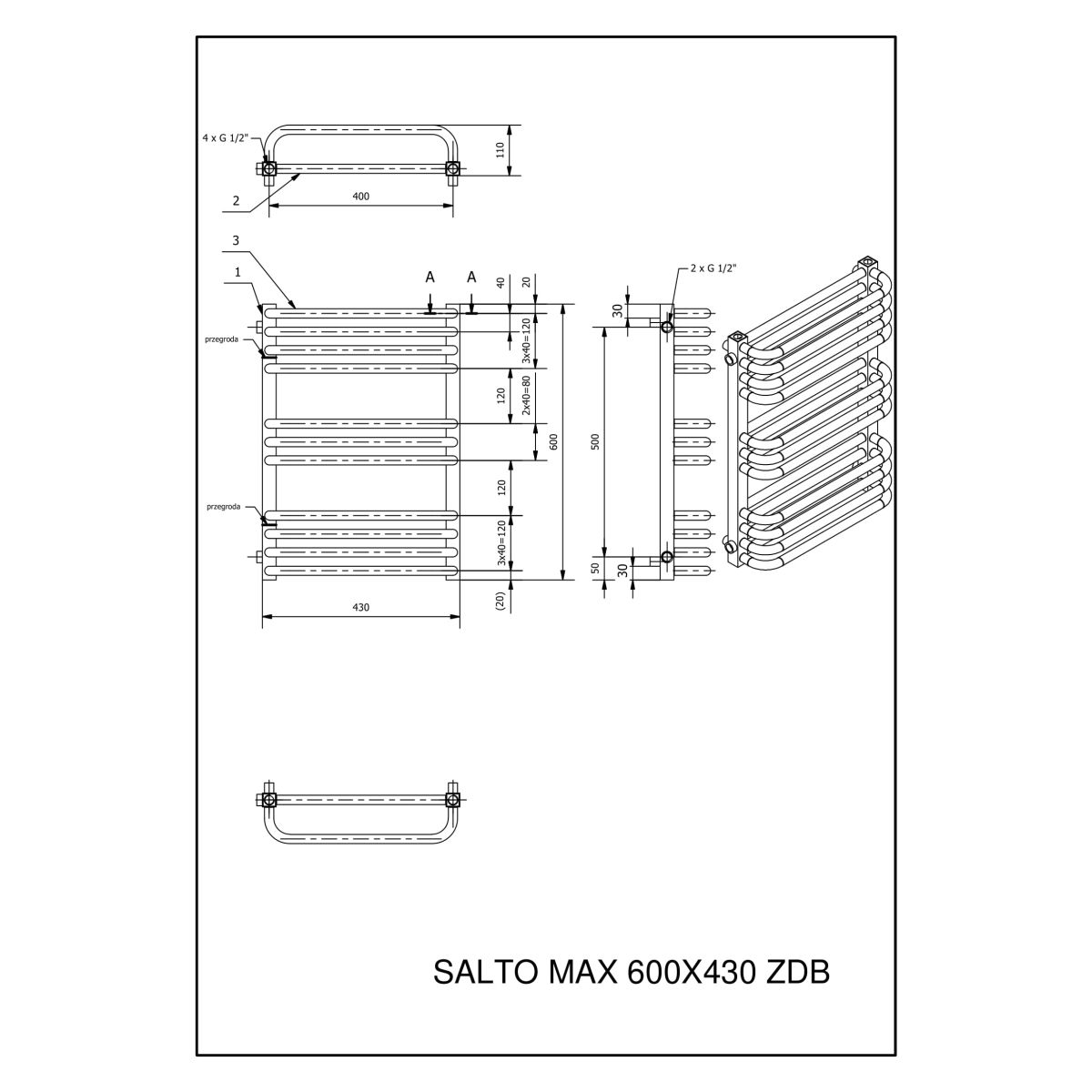 Luxrad Salto Max Badezimmerheizkörper dekorativ 60x43 cm weiß SAM6004309003
