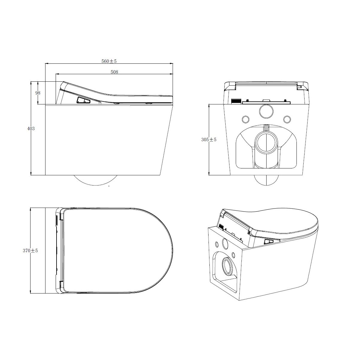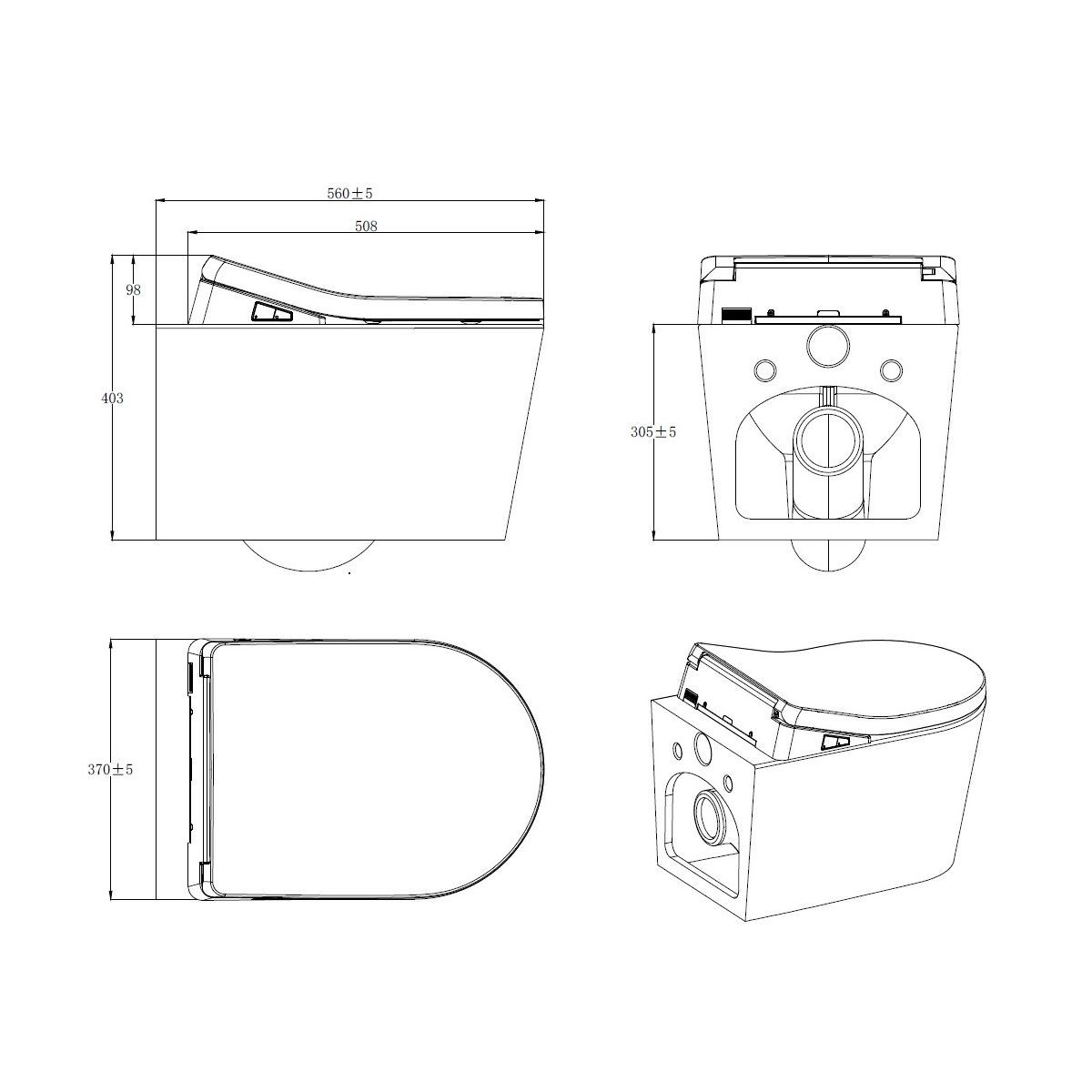 • Montageart: Hängende Toilettenschüssel, Montage an einem Unterputzgestell mit Wassertank und Spülknopf