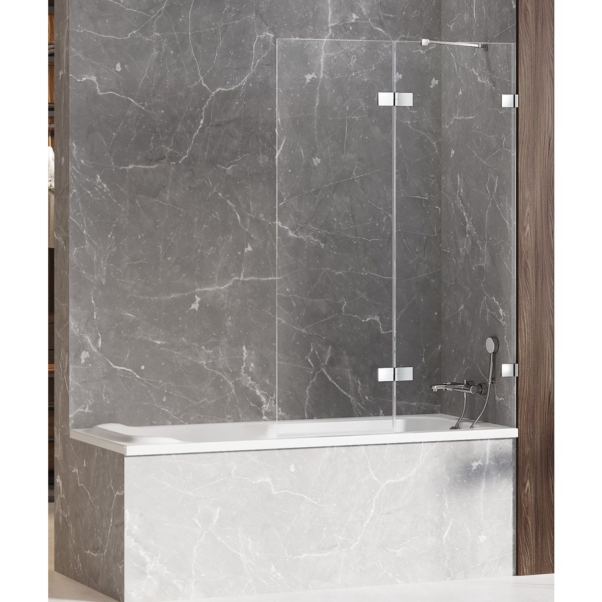 New Trendy Avexa Badewannenabtrennung 100 cm zweigeteilt chrom Glanz/durchsichtiges Glas EXK-1954