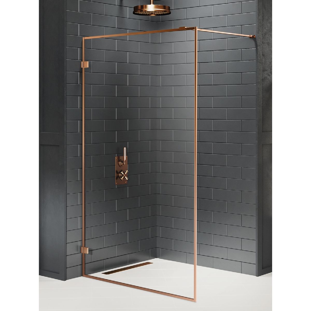 New Trendy Avexa Copper Brushed Begehbare Duschwand 130 cm kupfer gebürstet/durchsichtiges Glas EXK-4323