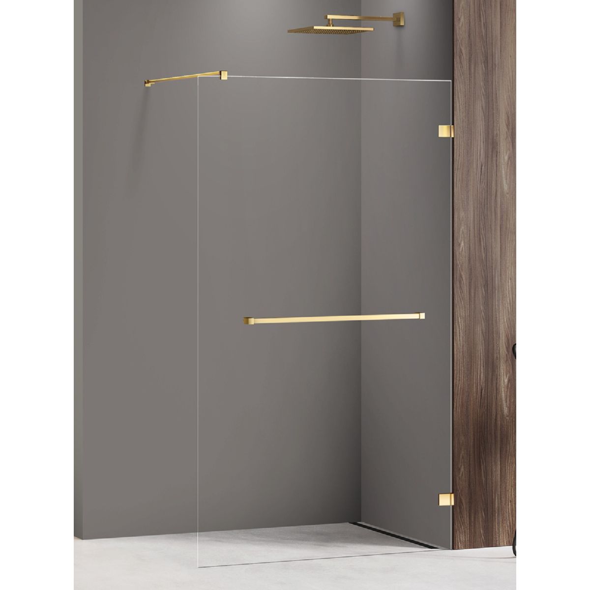 New Trendy Avexa Gold Shine Begehbare Duschwand 150 cm gold Glanz/durchsichtiges Glas EXK-7086