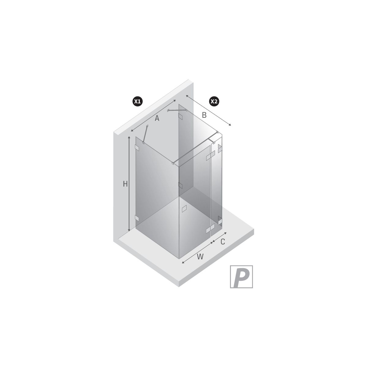 - Einstellbereich (X2) bis zur Achse der Kabinenscheibe: 117 - 118 cm