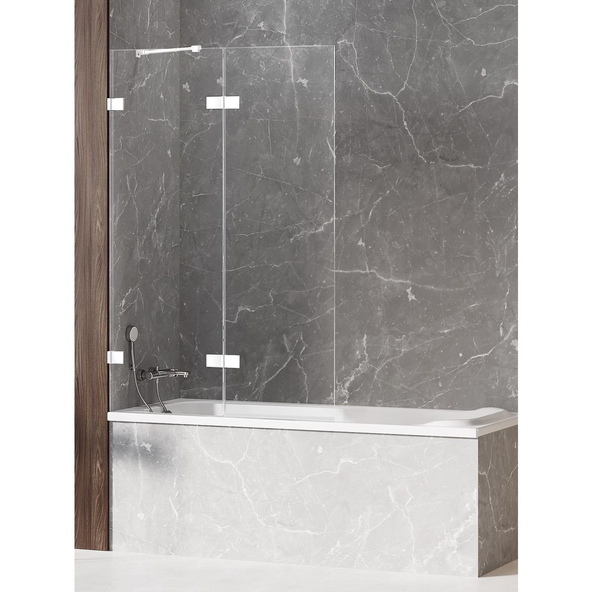 New Trendy Avexa White Badewannenabtrennung 130 cm zweigeteilt weiß Matte/durchsichtiges Glas EXK-2978