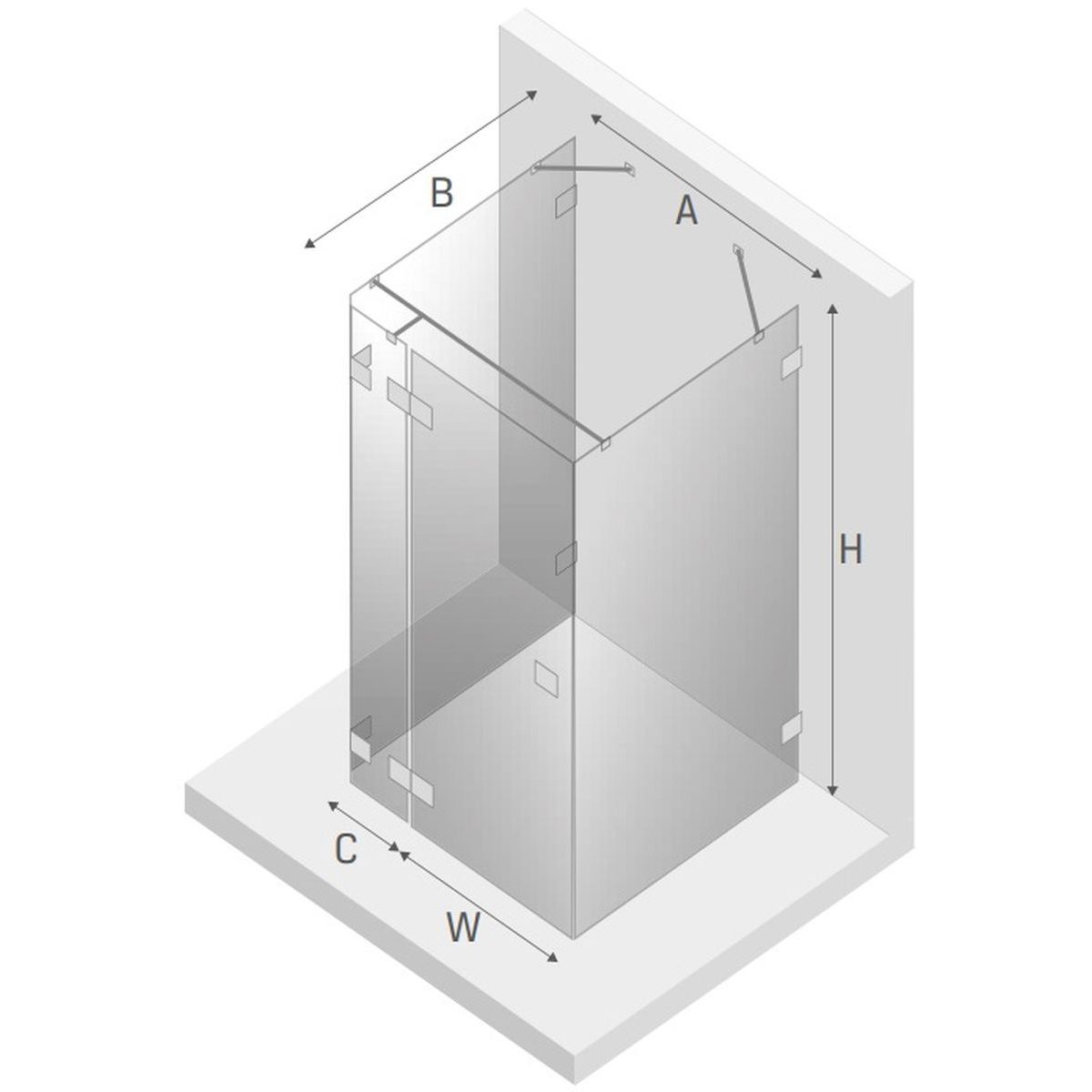 - Breite der Tür mit kurzer Wand (A): 80,8 cm