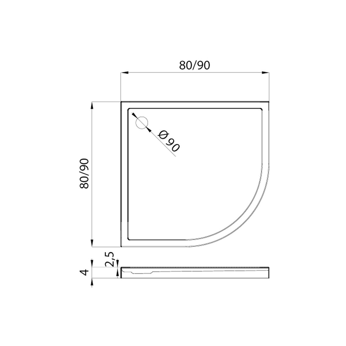 New Trendy Cantare Halbrunde Duschwanne 90x90 cm weiß B-0382