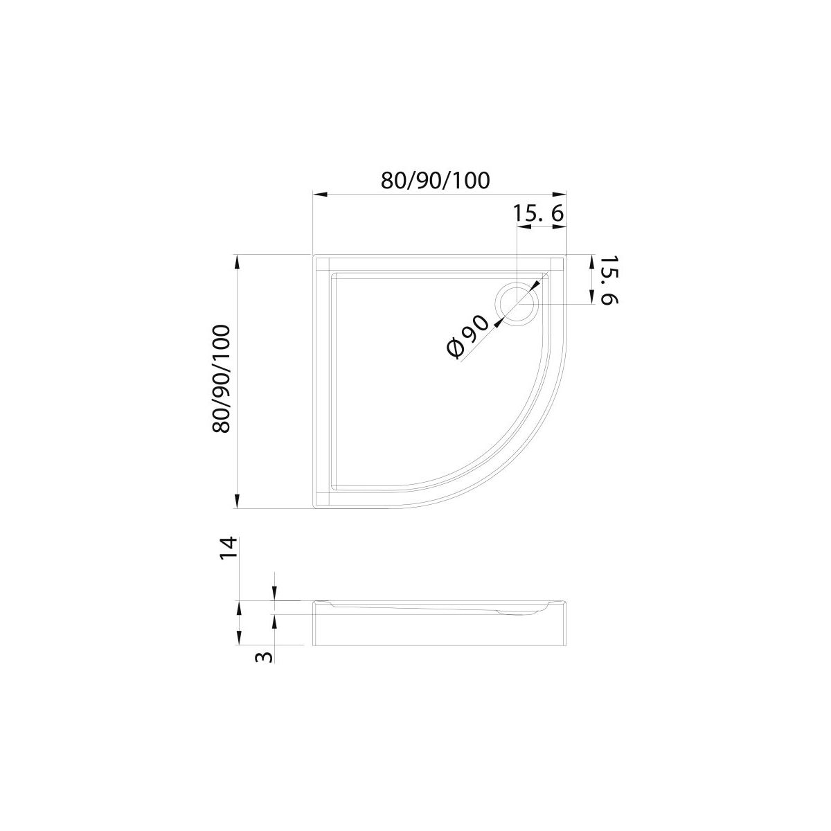New Trendy Columbus Halbrunde Duschwanne 90x90 cm weiß B-0103