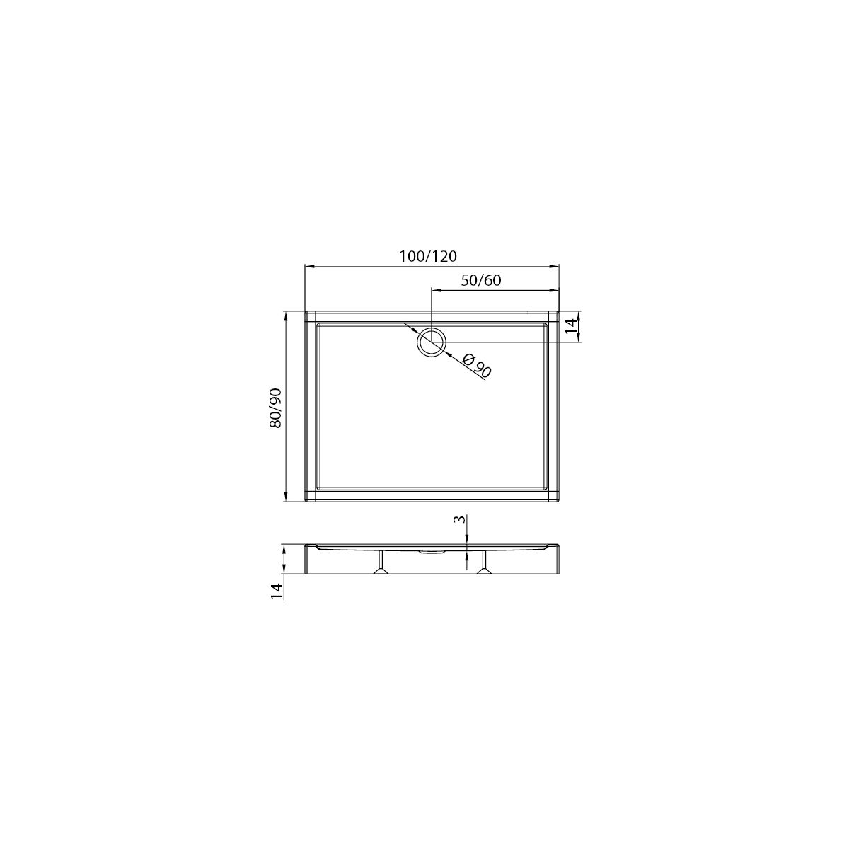 New Trendy Columbus Rechteckige Duschwanne 100x90 cm weiß B-0332