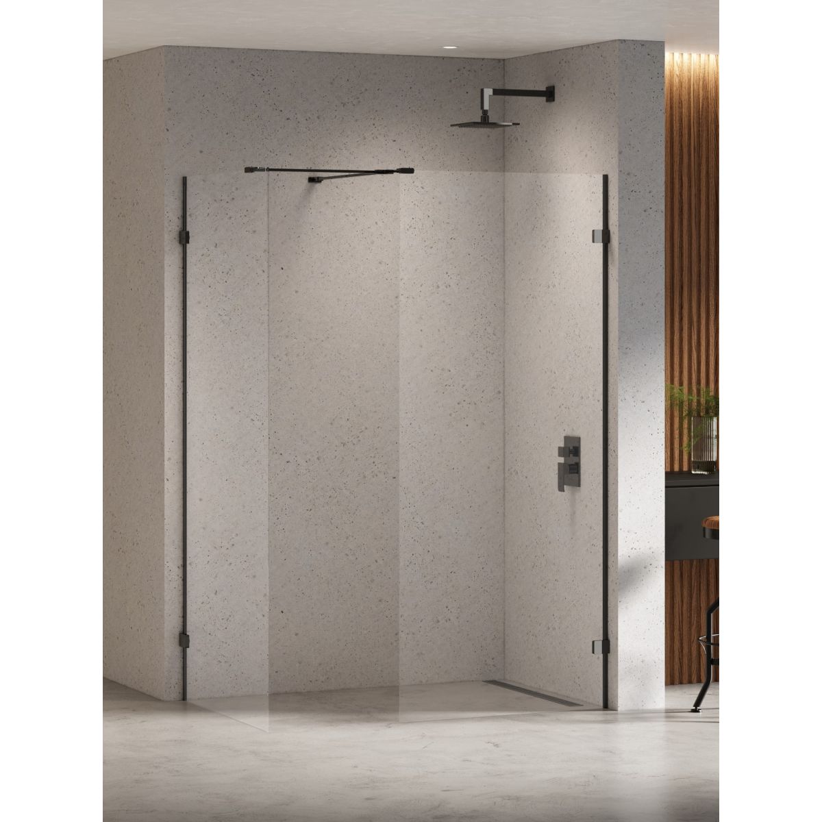 New Trendy Eventa Black Chrome Begehbare Duschkabine 140x90 cm schwarz Glanz/durchsichtiges Glas EXK-6344