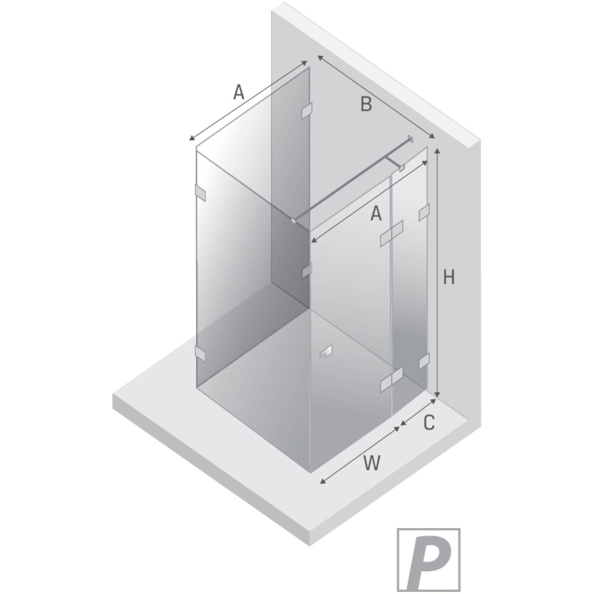 - Breite der kurzen Wand (C): 34,5 cm