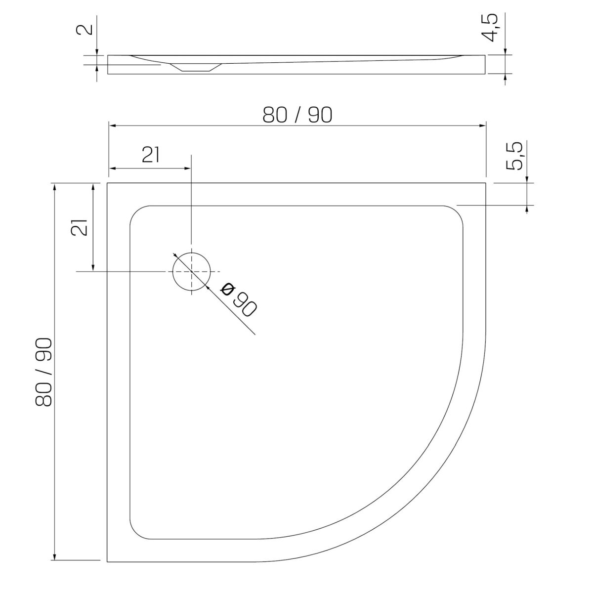 New Trendy Mild Halbrunde Duschwanne 90x90 cm weiß B-0622
