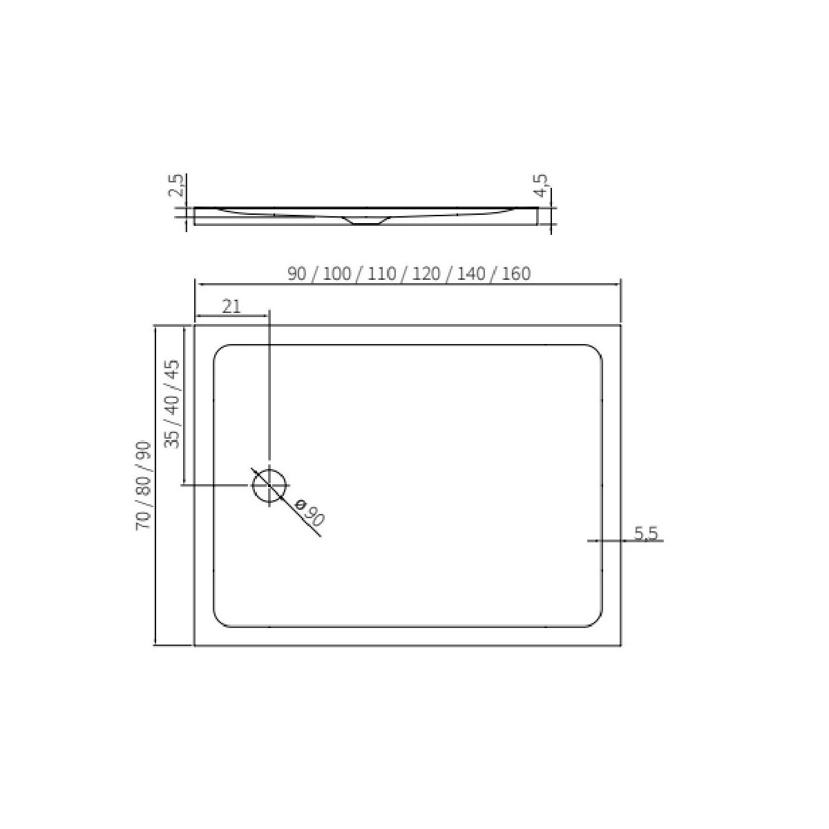 New Trendy Mild Rechteckige Duschwanne 100x90 cm weiß B-0638