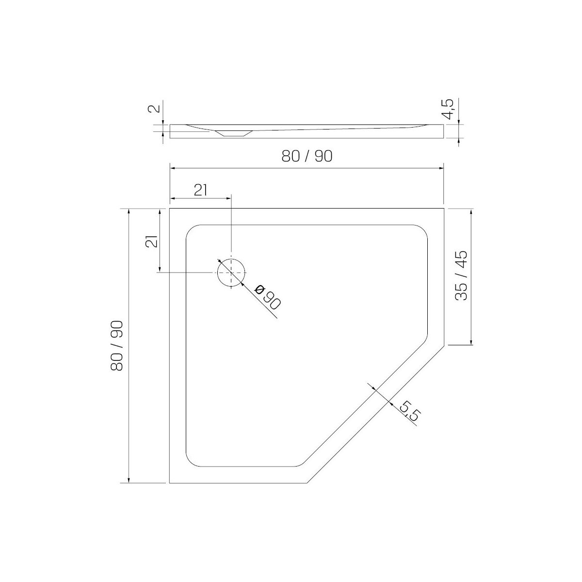 - Fünfeckige Duschwanne
