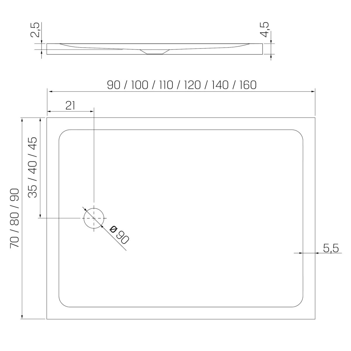 - Kürzere Seite [cm]: 90