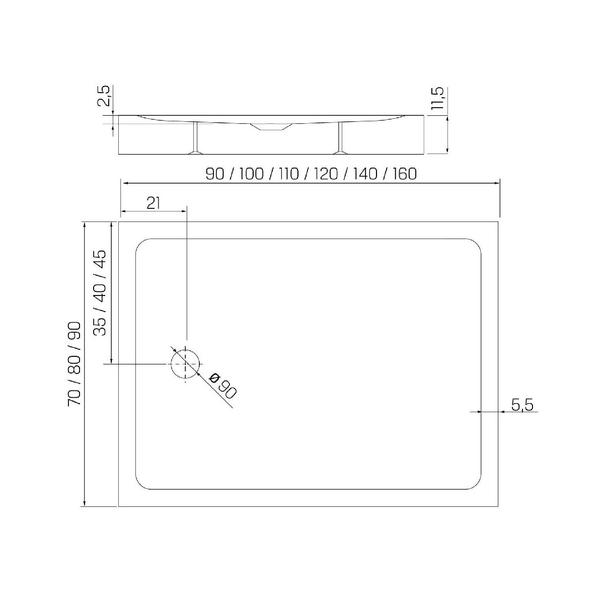 - Längere Seite [cm]: 90