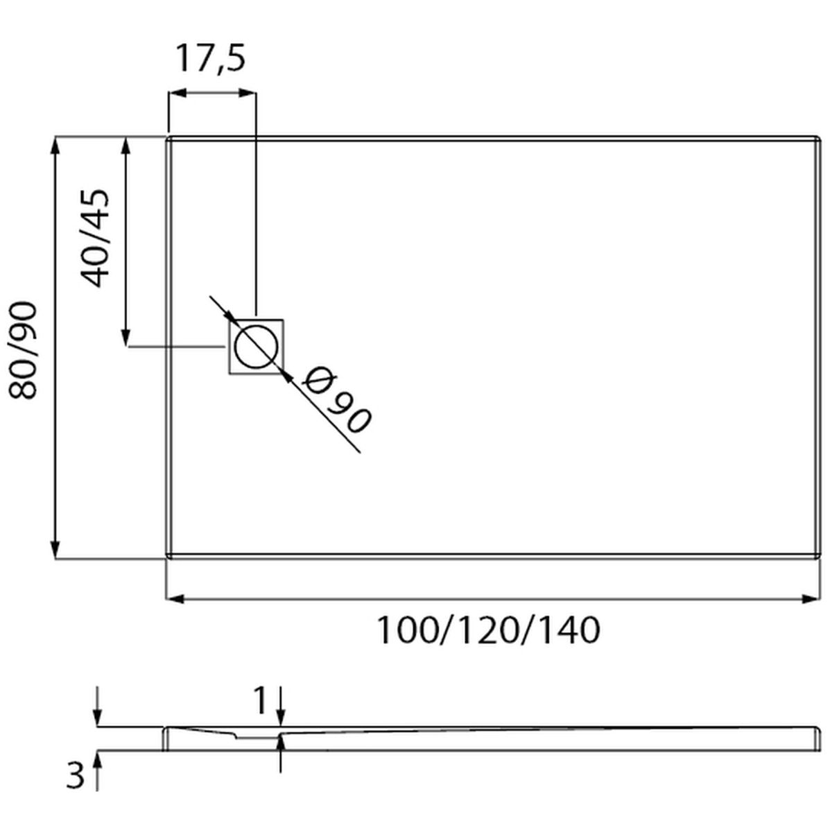 New Trendy Mori Rechteckige Duschwanne 140x80 cm schwarz B-0407
