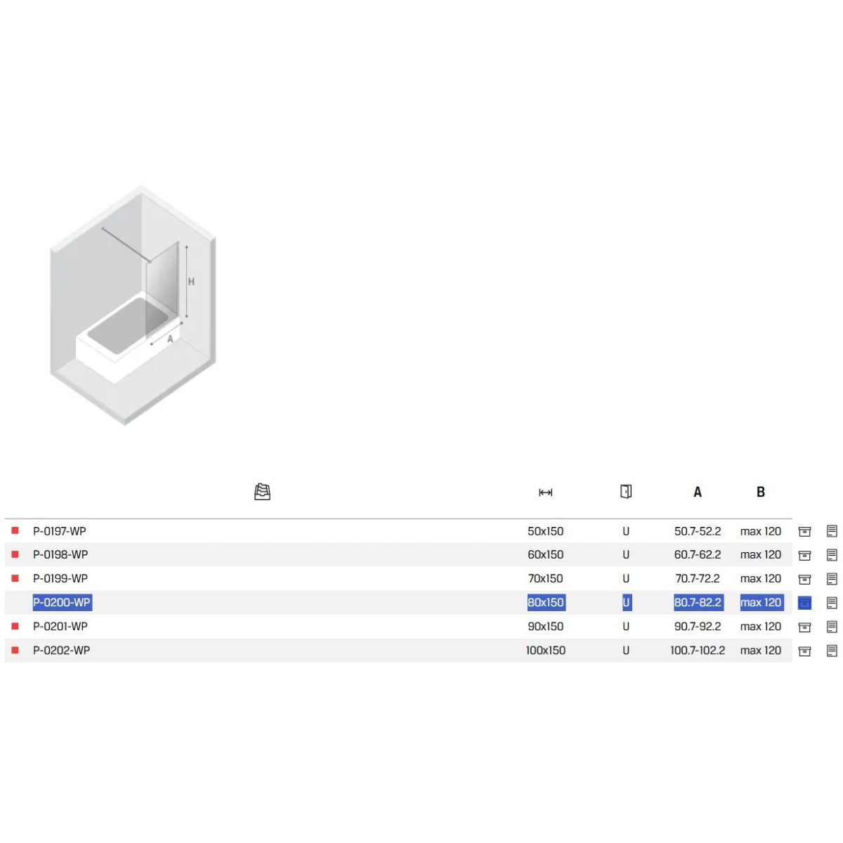 New Trendy Nesta Black Badewannenabtrennung 80 cm einteilig schwarz Matte/durchsichtiges Glas P-0200-WP
