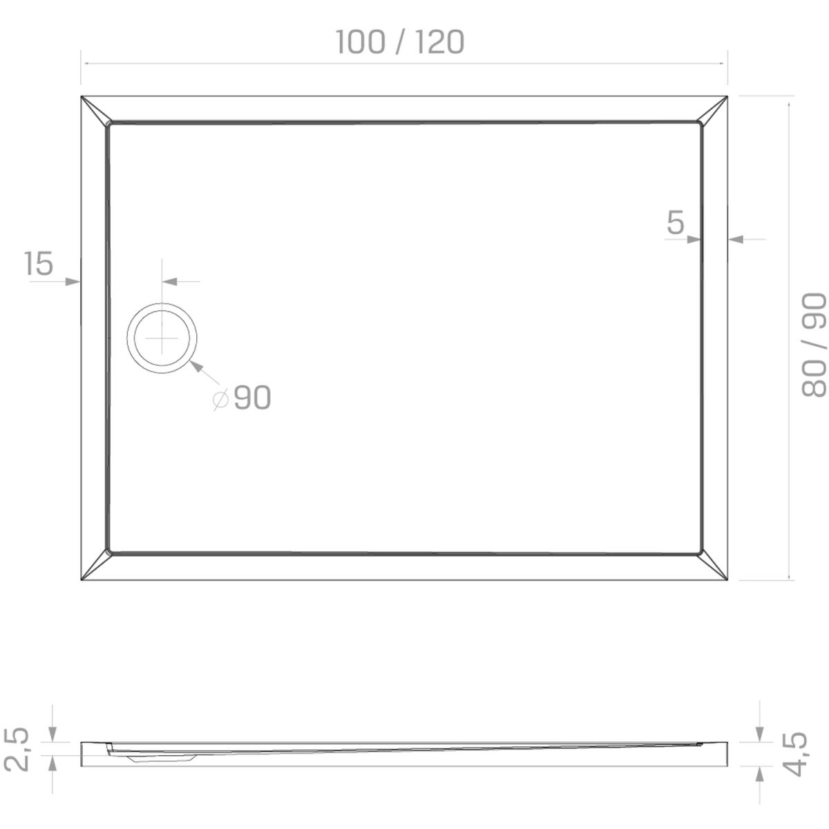 New Trendy New Cantare Rechteckige Duschwanne 100x80 cm weiß B-0424