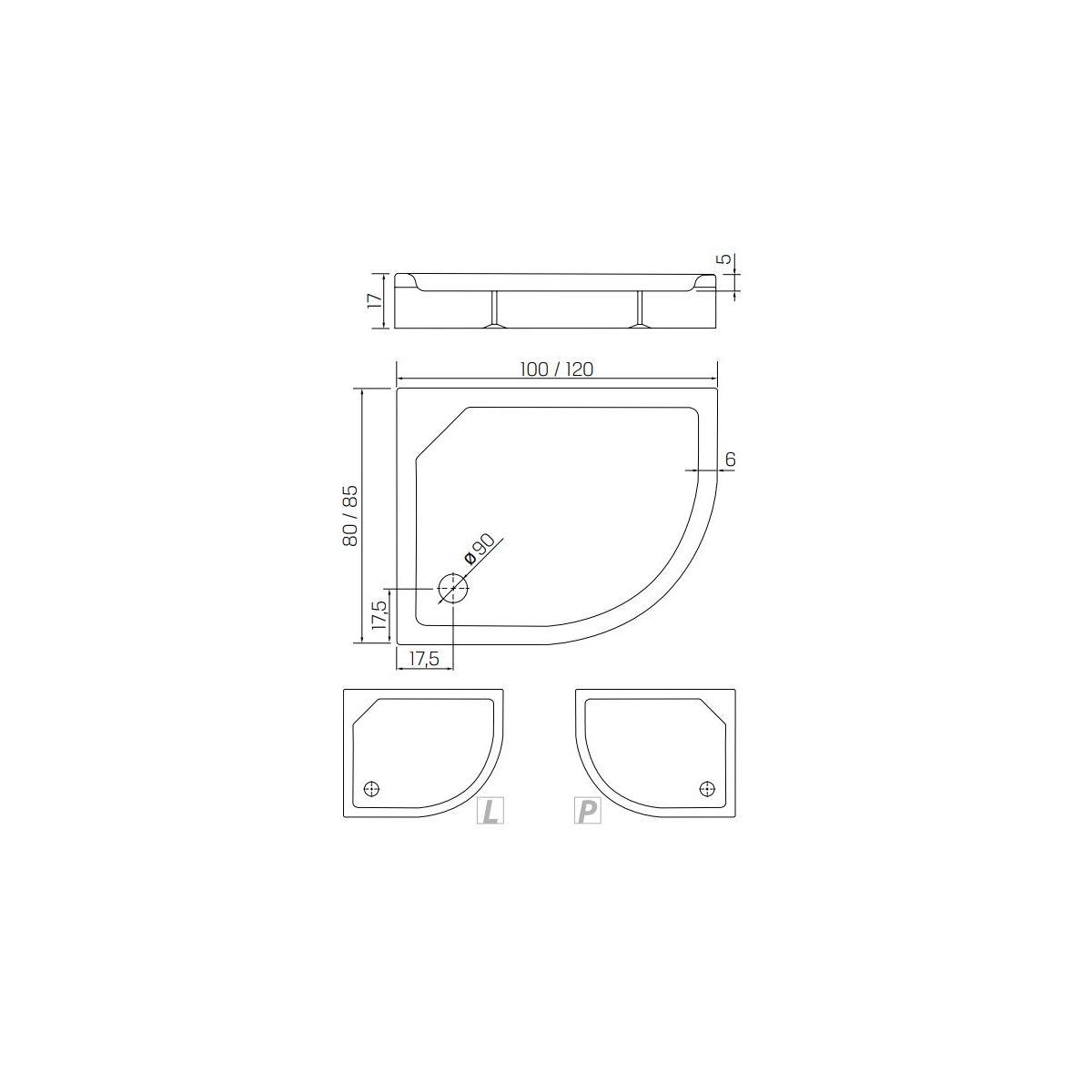 New Trendy New Maxima Halbrunde Duschwanne 100x80 cm weiß B-0339