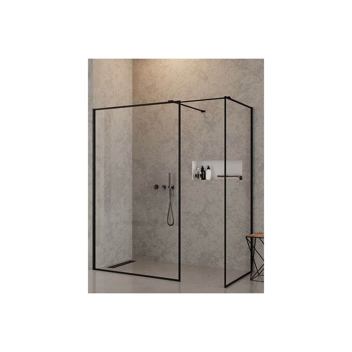 New Trendy New Modus Black Begehbare Duschkabine 150x90 cm rechteckig schwarz Matte/durchsichtiges Glas EXK-0122