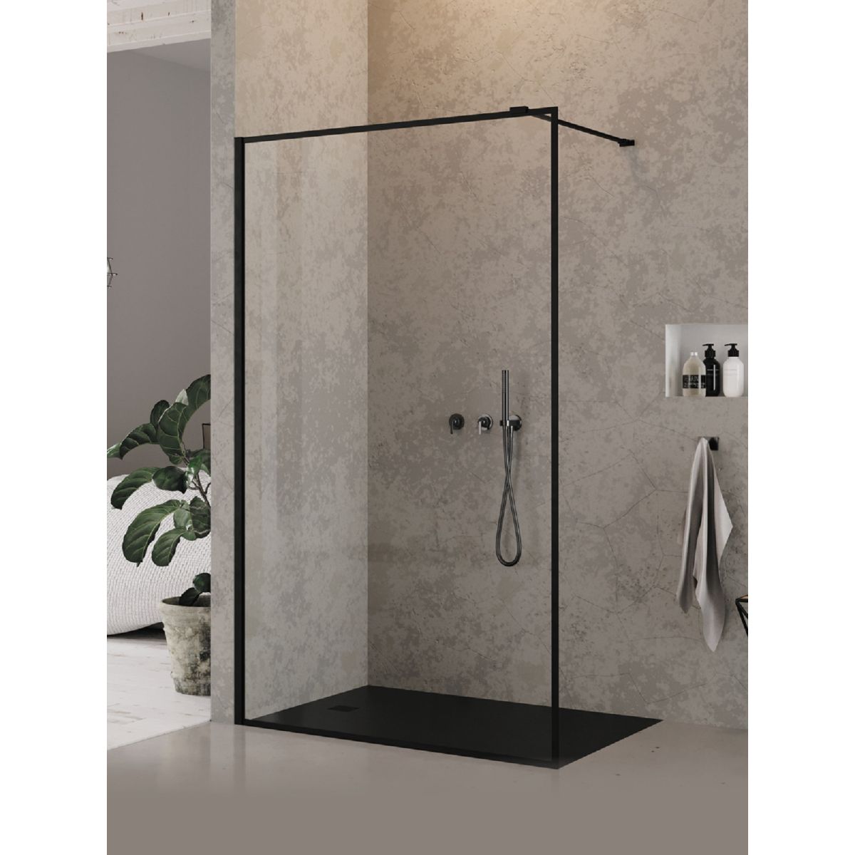 New Trendy New Modus Black Begehbare Duschwand 90 cm schwarz Matte/durchsichtiges Glas EXK-5557