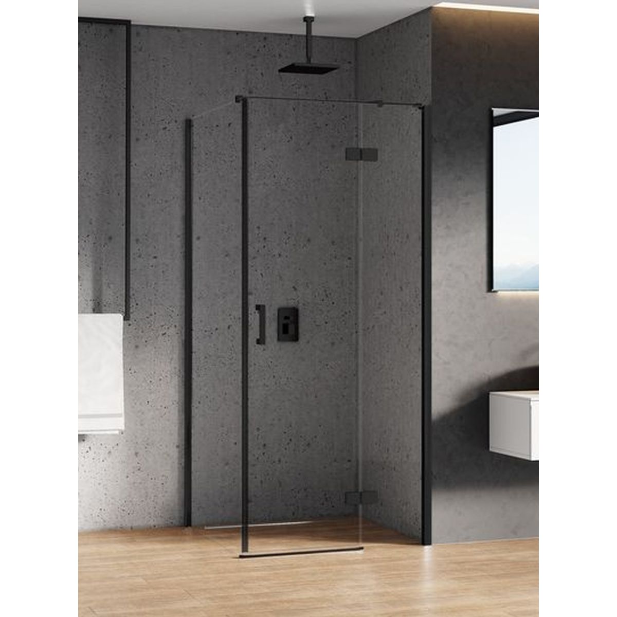 New Trendy New Renoma Black Dusche 100x90 cm rechteckig schwarz Matte/durchsichtiges Glas D-0203A/D-0112B-WP