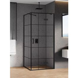 New Trendy New Renoma Black Dusche 100x90 cm rechteckig schwarz Matte/Glas mit Muster D-0381A/D-0119B