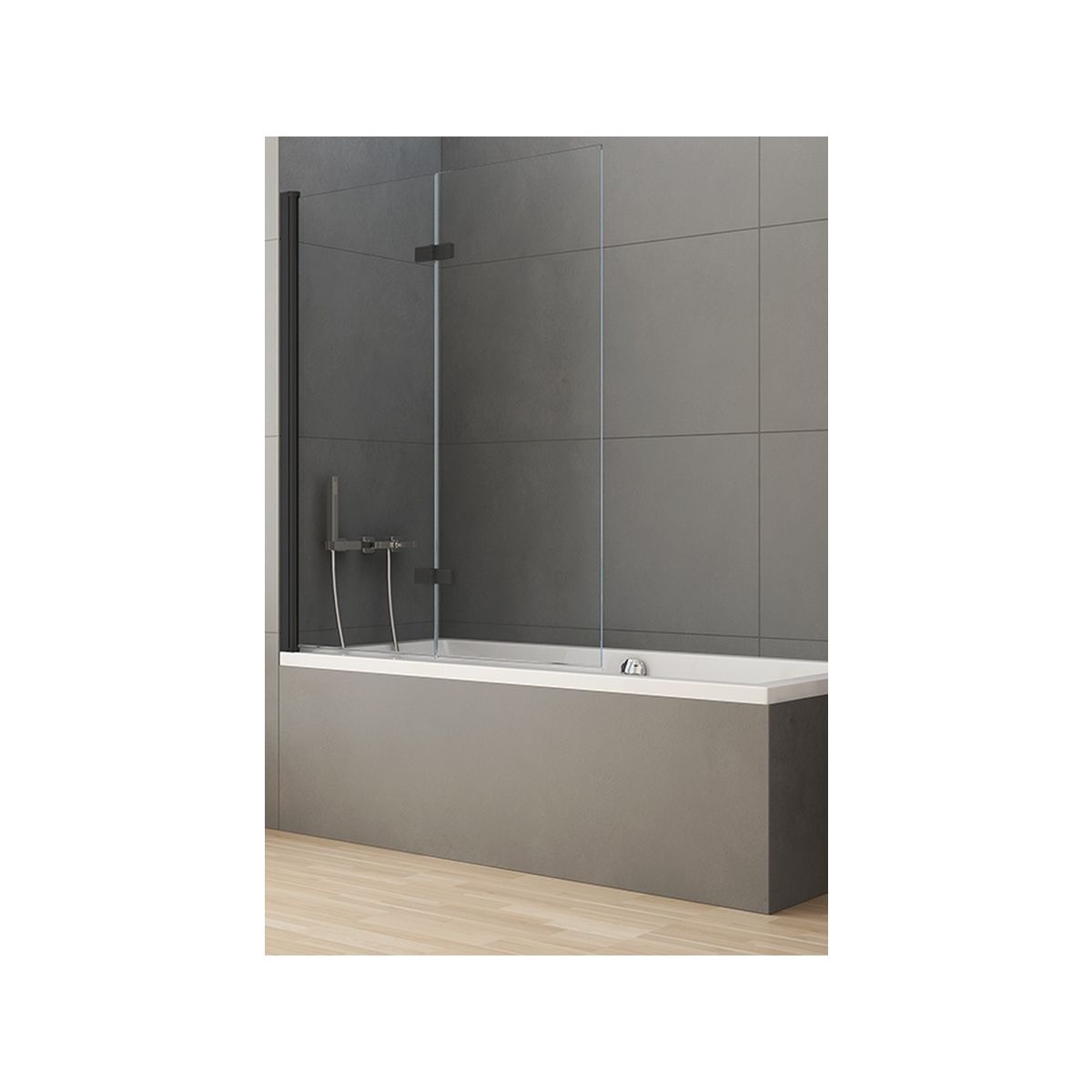 New Trendy New Soleo Black Badewannenabtrennung 100 cm zweigeteilt schwarz Matte/durchsichtiges Glas P-0041