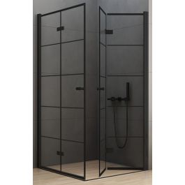 New Trendy New Soleo Black Dusche 80x80 cm quadratisch schwarz Matte/Glas mit Muster D-0287A/D-0288A