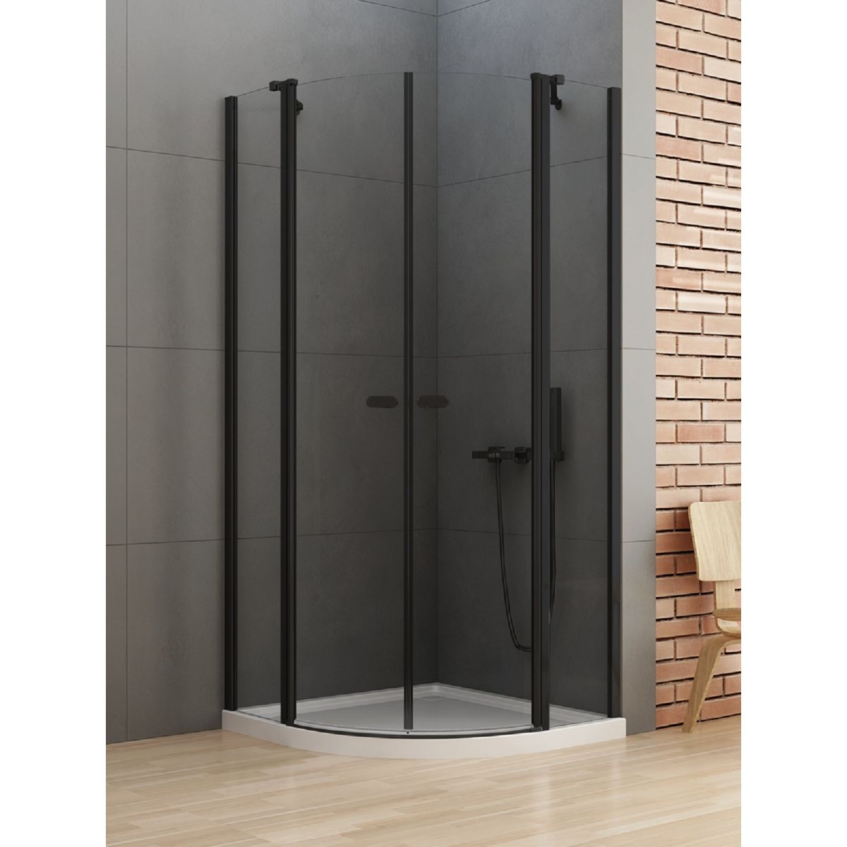 New Trendy New Soleo Black Dusche 90x90 cm halbrund schwarz Matte/durchsichtiges Glas K-0539