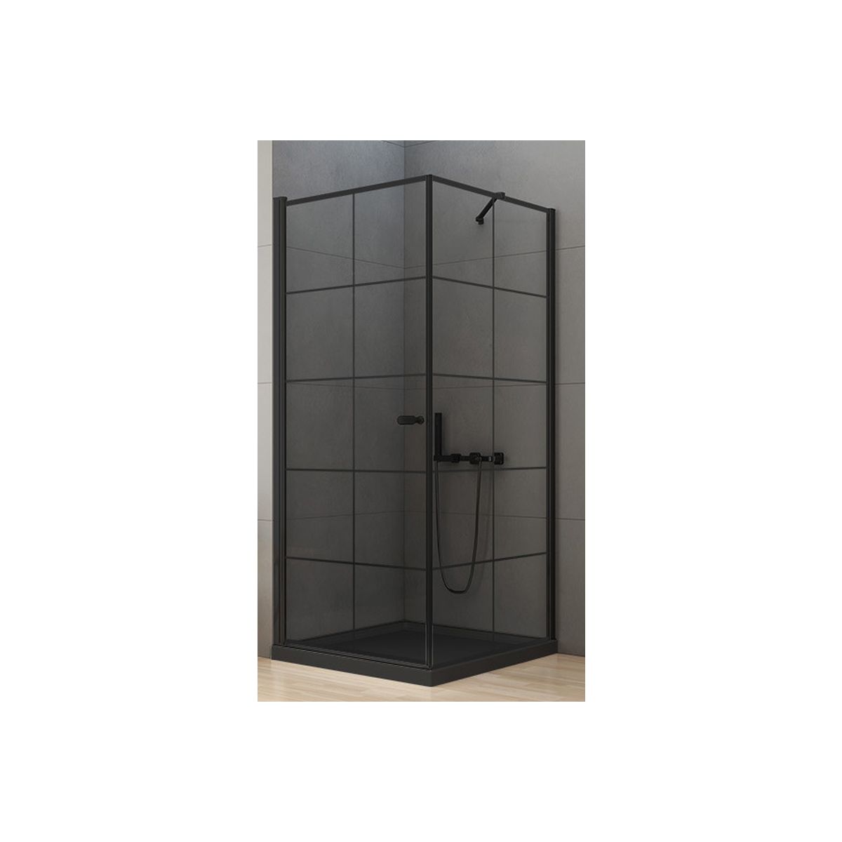 New Trendy New Soleo Black Dusche 90x90 cm quadratisch schwarz Matte/Glas mit Muster D-0285A/D-0120B