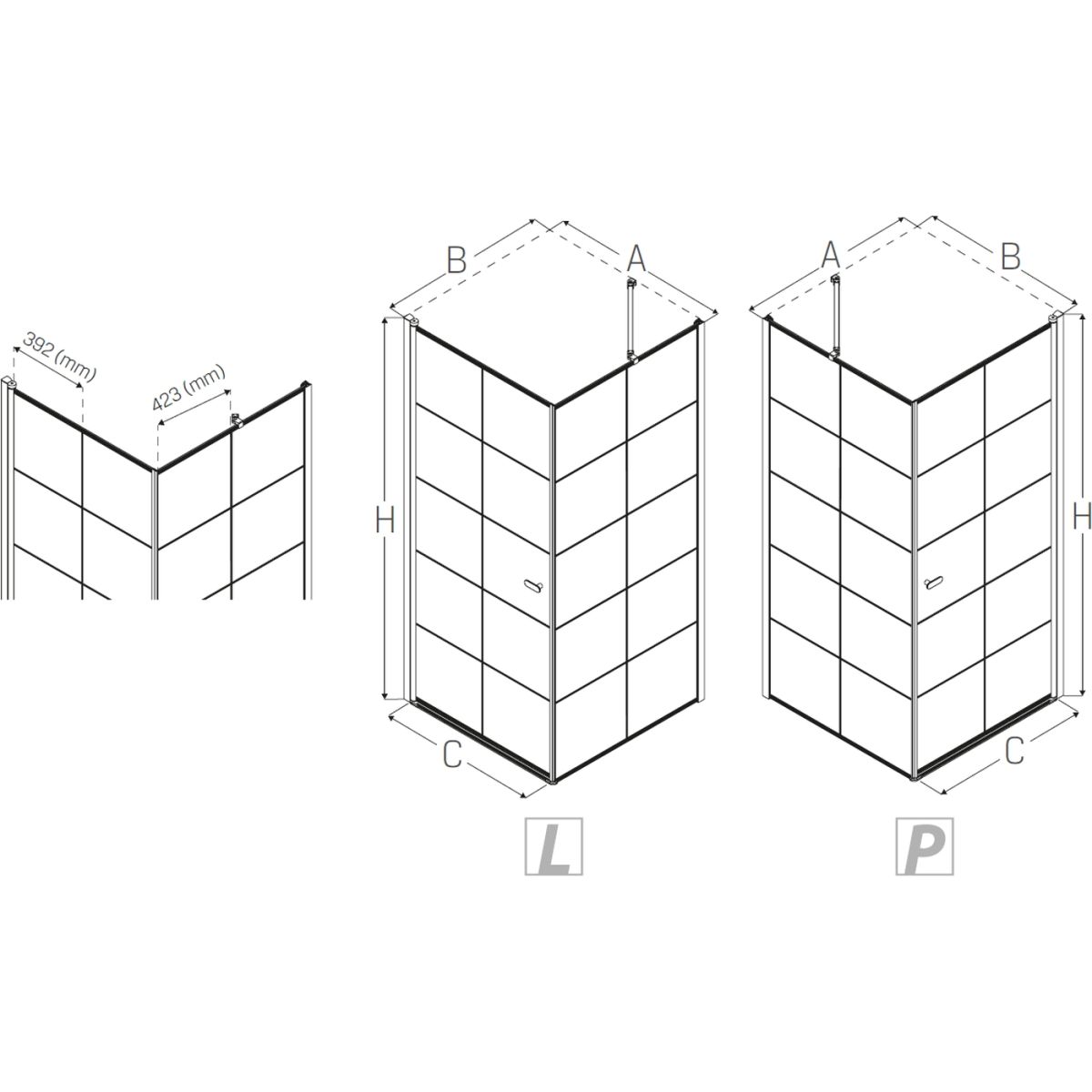 - Abmessungen (Tür x Seitenwand): 90 x 90 cm