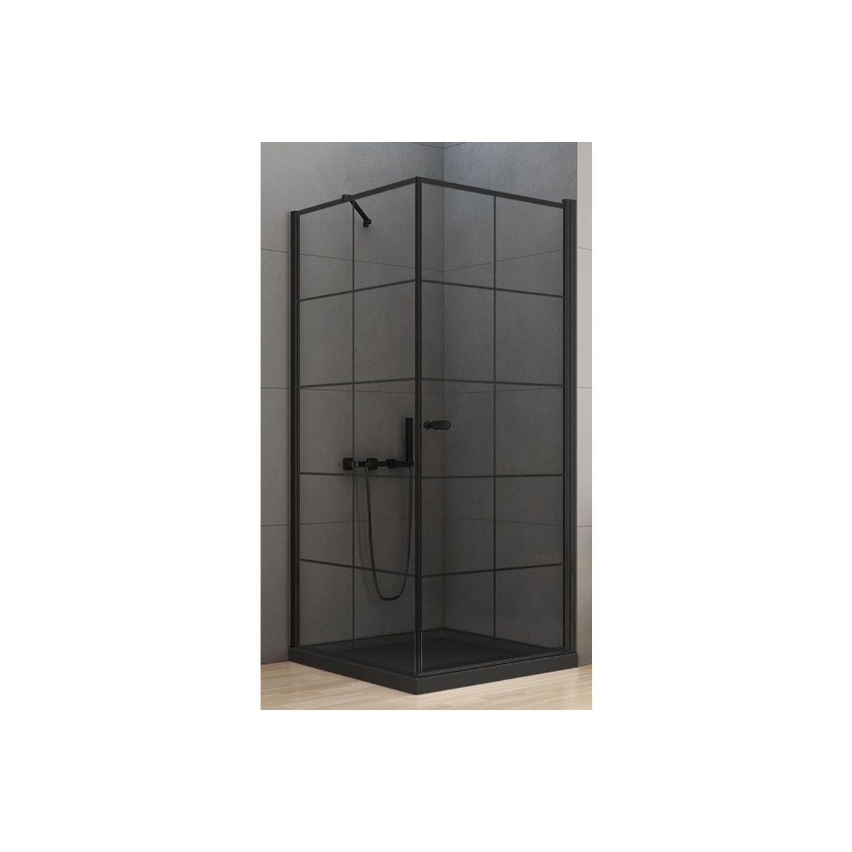 New Trendy New Soleo Black Dusche 90x90 cm quadratisch schwarz Matte/Glas mit Muster D-0285A/D-0121B