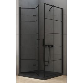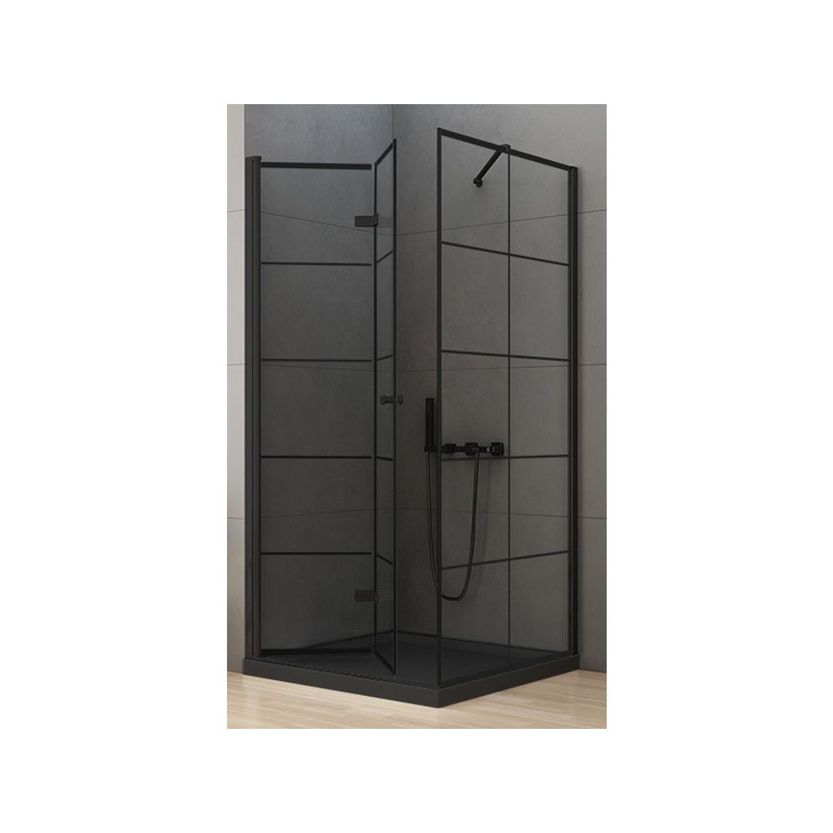 New Trendy New Soleo Black Dusche 90x90 cm quadratisch schwarz Matte/Glas mit Muster D-0289A/D-0120B