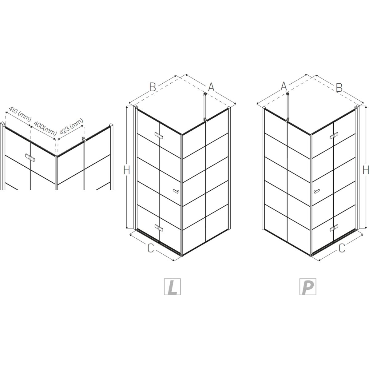 - Abmessungen (Tür x Seitenwand): 90 x 90 cm