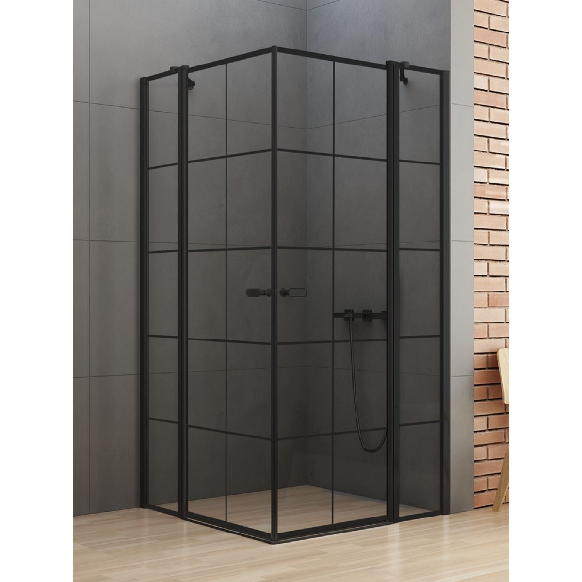 New Trendy New Soleo Black Dusche 90x90 cm quadratisch schwarz Matte/Glas mit Muster K-0580