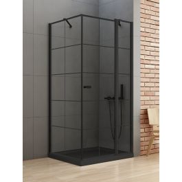 New Trendy New Soleo Black Dusche 90x90 cm quadratisch schwarz Matte/Glas mit Muster K-0581