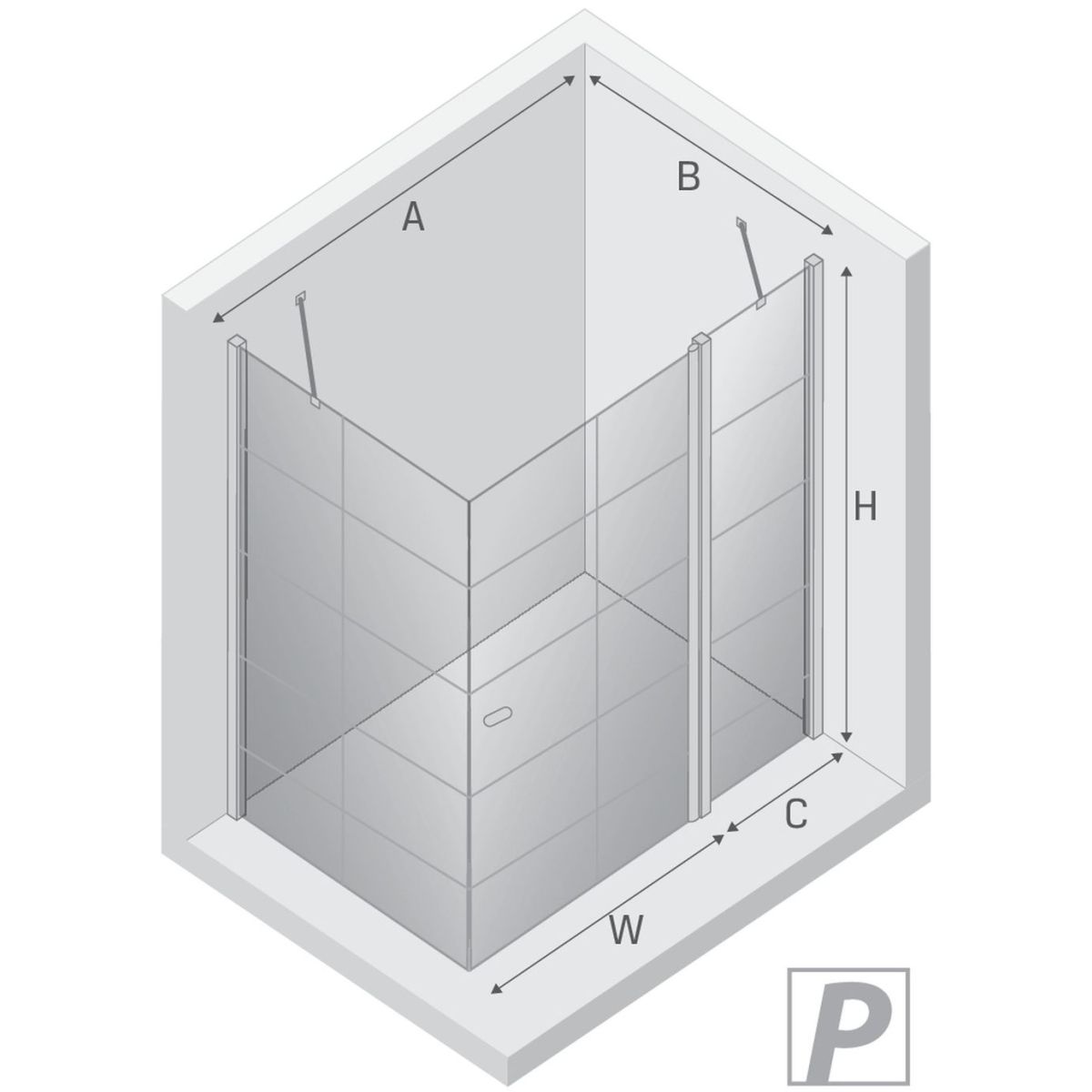 - Breite der Zusatzwand (C): 26,5 cm