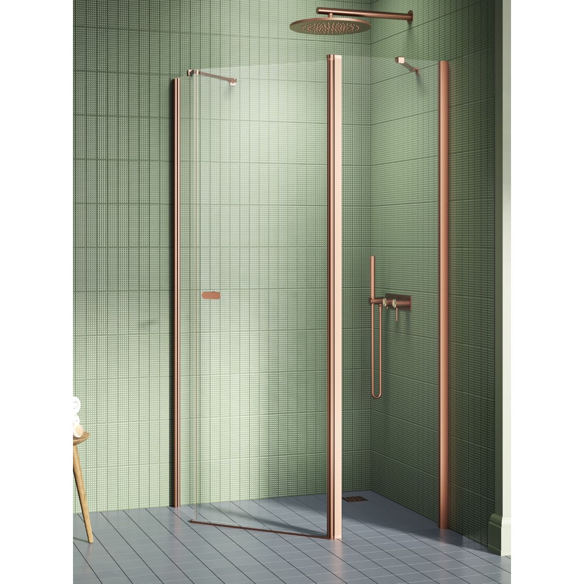 Das Modell New Soleo Copper Brushed verfügt über elegante Kupferdetails mit gebürsteter Oberfläche. Die Duschkabinen sind mit sicheren, 6 mm starken Hartglasscheiben mit Active Shield 2.0-Schutzbeschichtung ausgestattet. Sie verfügen über ein linksseitiges Säulenscharnier, mit dem sich die Tür nach außen und innen öffnen lässt. Das Produkt kann mit oder ohne Duschwanne installiert werden.